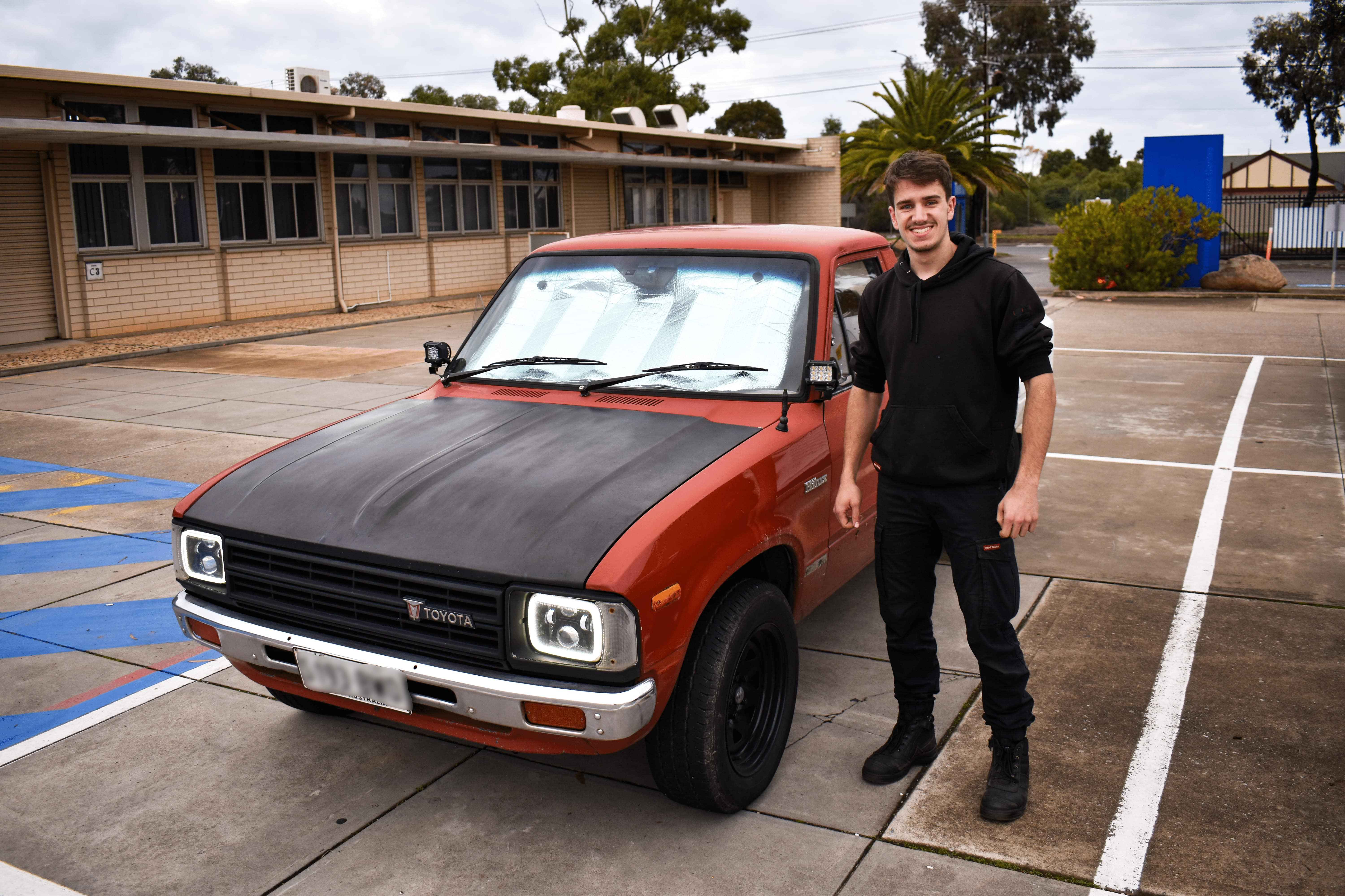 Introducing Michele, a skilled light vehicle apprentice who has dedicated his time and expertise to modifying his prized possession, a 1981 Toyota Hilux RN41 SR5, the premium model of its time. With custom additions such as an aluminum tray, authentic Toyota Hilux steelies, and a sleek black bumper, Michele is turning his cherished vehicle into a one-of-a-kind masterpiece.