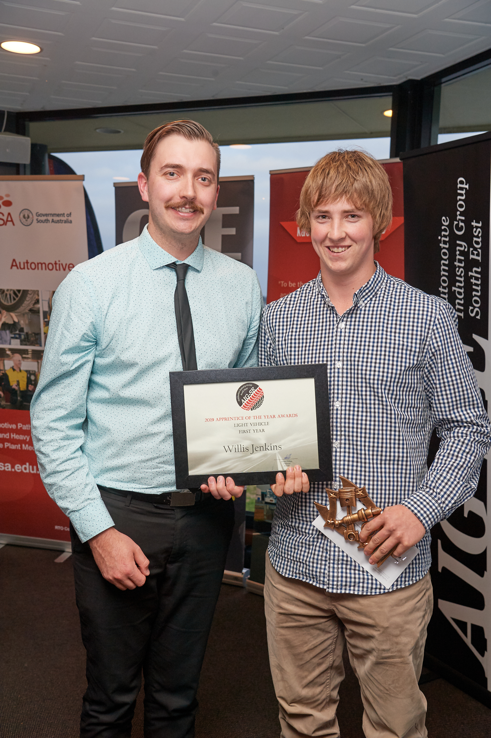 First year MTA apprentice, Willis Jenkins, hosted at OG Roberts Mount Gambier, has won the 1st Year Apprentice of the Year Award at the Automotive Industry Group South East Awards night.