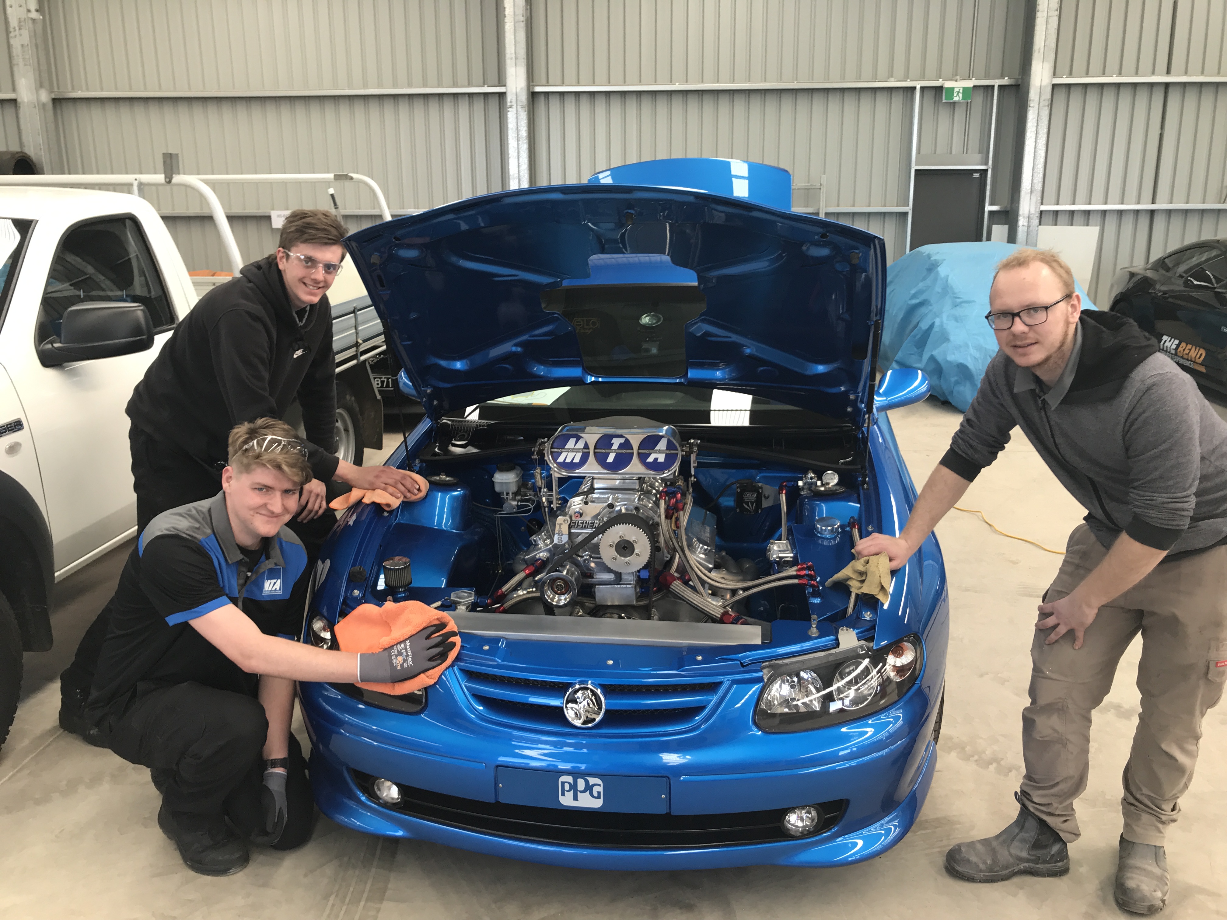 We also thank Lowbake for supplying the mobile paint booth for our Automotive Refinishing Technician apprentices to use. Automotive Refinishing Technology Apprentice, Lachlan Mosely, painted a Toyota Hilux and assisted in repairing a crashed race-going vintage Ford Falcon.